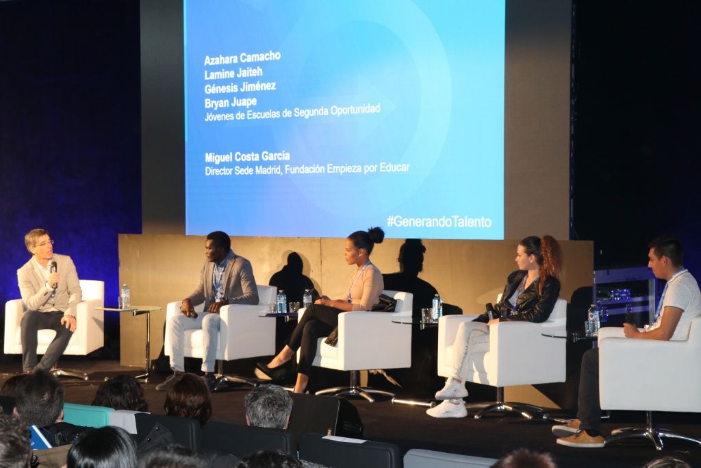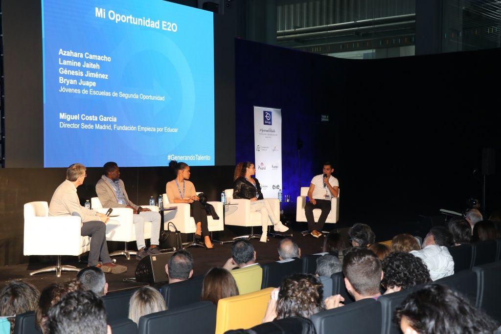Más adelante, Bryan Juape, uno de los embajadores más conocidos de La Rueca Asociación, participó en la mesa «Mi oportunidad E2O» junto a jóvenes de otras entidades que han podido realizarse gracias a estos programas formativos.