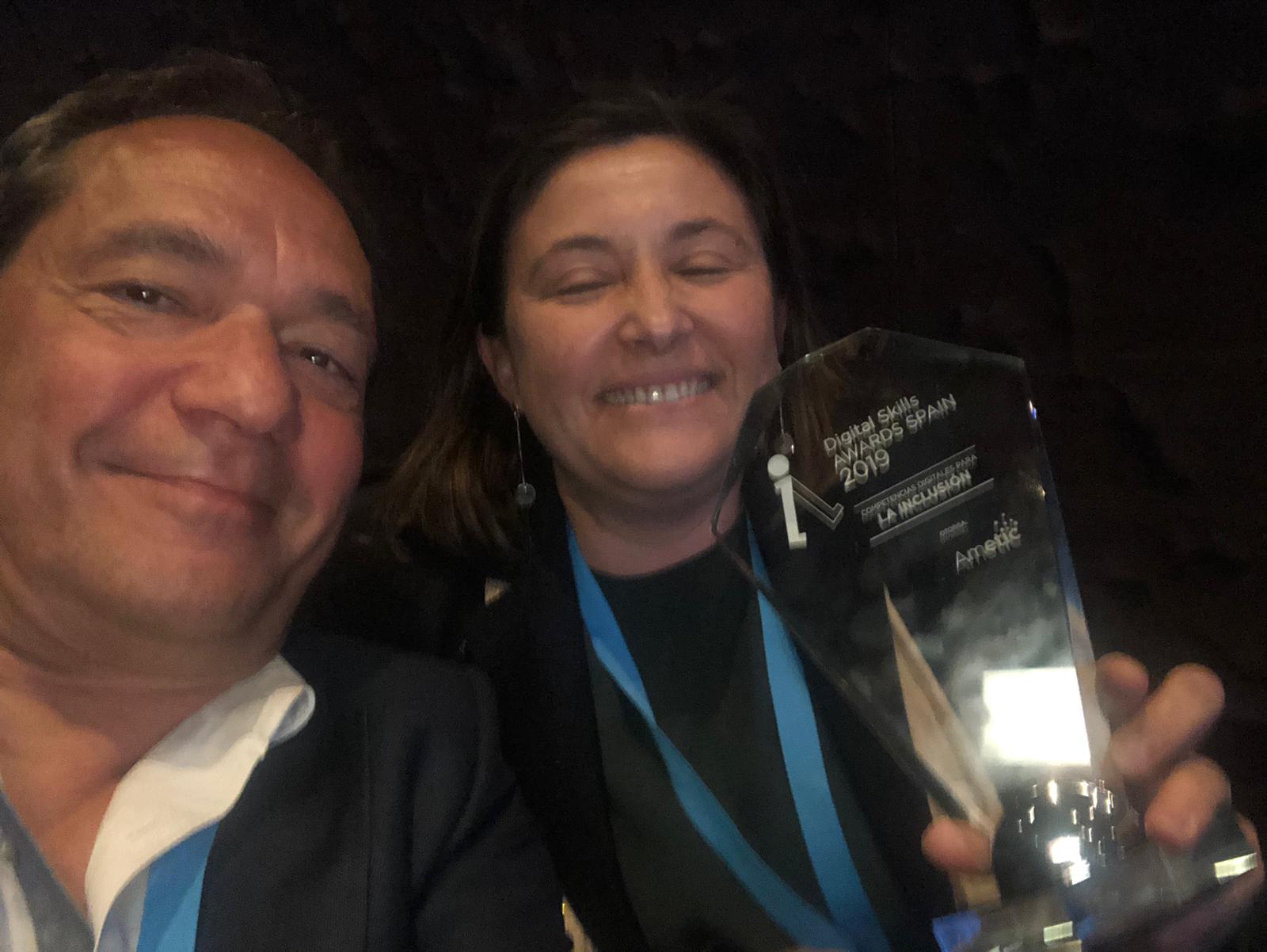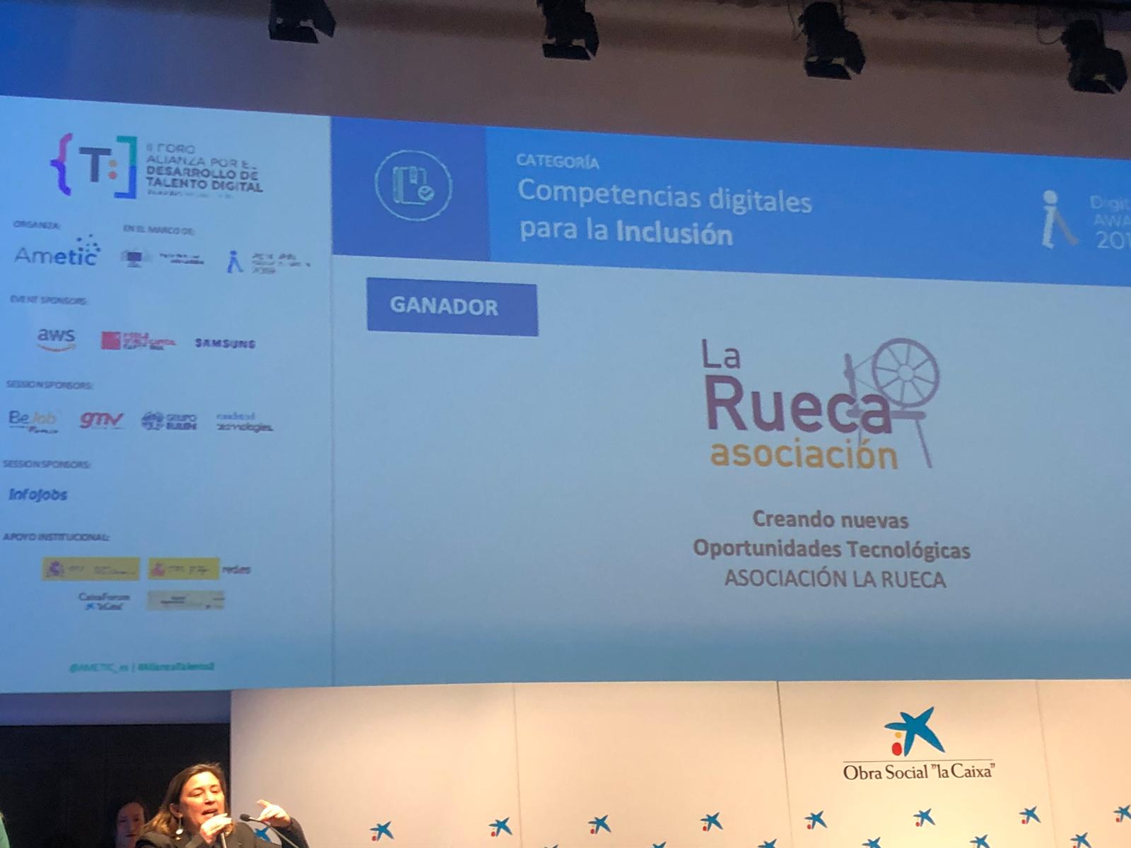 En el marco del ‘Digital Skills Awards Spain 2019’ incluido en la ‘Digital Skills and Jobs Coalition’ de la Comisión Europea, celebrado en el II Foro Alianza por el Desarrollo de Talento Digital #AlianzaTalento2, la Rueca Asociación ha obtenido el premio en la categoría Competencias digitales para la inclusión social, entre otras 29 finalistas repartidas en 7 categorías diferentes.